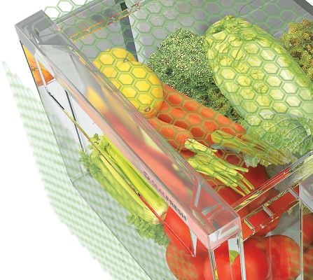 Vegetable Crisper with Honey Comb Moisture Lock-in Technology maintains optimum moisture in your vegetables and keeps them fresher for longer.