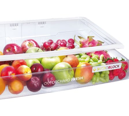 The unique storage space created for fruits comes with a Microblock that prevents up to 99.9% bacterial growth for product lifetime. Simultaneously, the separate zone for your fruits prevents odour mixing between fruits and vegetables.