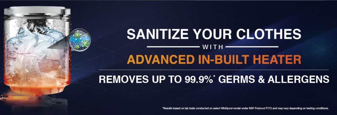 *Results based on internal lab test conducted on select Whirlpool models with identified stains washed within 48 hours under specific test conditions and may vary basis testing conditions