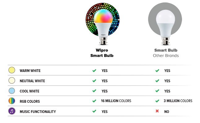 * This Wipro NS9400 Smart Bulb image is for illustration purpose only. Actual image may vary.16 Million Colour