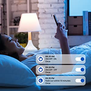 With the timer setting function, Wipro smart lights will wake you up in your pre-set time or help you drift off to a peaceful sleep.