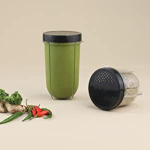 Nutri-blend comes with extra cover lid & sprinkler cap for all your storage and seasoning requirements.