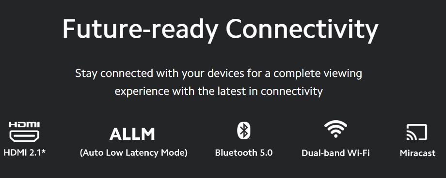 - Bluetooth 5.0, Built In Wi-Fi, Ethernet, CC Cast