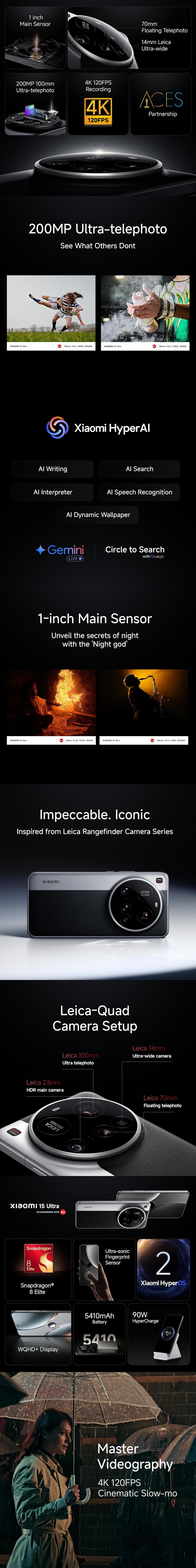 Xiaomi 15 Ultra 5G 512 GB, 16 GB RAM, Silver, Mobile Phone