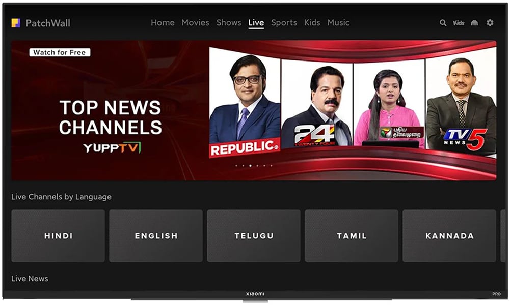 Access 90+ channels streamed directly from PatchWall home-screen. Access Live Sports, News and Entertainment across regional languages and TV channels