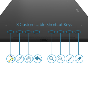 8 fully customizable express keys create a highly ergonomic and convenient work platform. The one-press toggle on the stylus also allows you to switch between pen and eraser instantly.