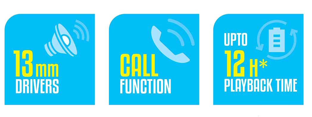 The wireless earbuds come with a compact portable charging case that gives up to 12* hours of playback time with the charging case.
