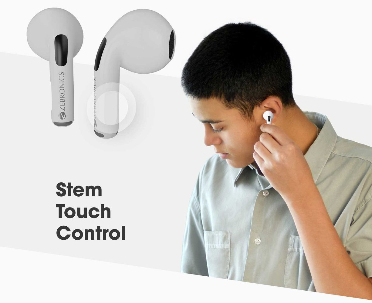 The wireless earbuds come with stem touch control; just touch the stem to change the media or voice assistant.