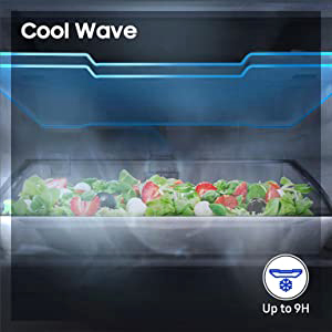 Cool Wave Provides cooling retention for up to 9 hours by circulating cool air inside the fridge. This keeps the food fresh for longer.