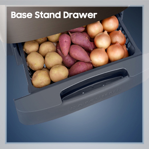 Keep vegetables at room temperature much more easily. There is a large Base Stand Drawer in the lower part of the refrigerator, a convenient place to store all of your food items that don’t need cooling, such as onions and potatoes. And you won’t use extra baskets or waste kitchen space.
