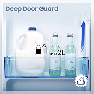 A Deep Door Guard can safely store larger bottles, bulky cartons of milk and juice and more beverage items without wasting space. It can fit in three 2L bottles and a 1L in the door at the same time.