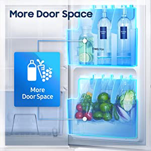 A multi-utility door bin, Fresh Max, provides plenty of extra space to store fruits and vegetables. It has a special divider to attach plastic bags and separate bottles, and auto close function and built-in deodorizer.