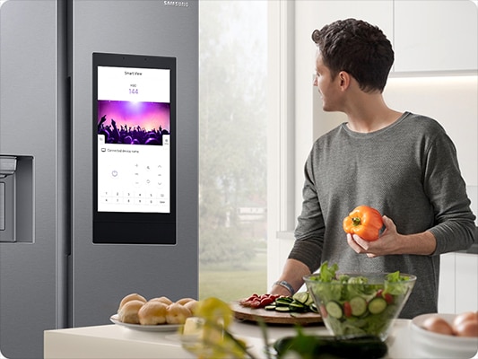 Enjoy seamless entertainment in the kitchen. SmartView mirrors what is on your Samsung Smart TV on the Family Hub home screen. It also lets you view and control your smartphone apps. In addition, you can stream songs with Spotify or listen to radio, news, podcasts and comedy shows on Tuneln.