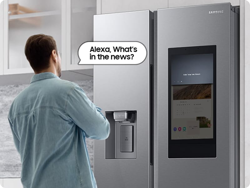 Access a range of Amazon services using your voice. The Amazon Alexa voice recognition assistant is built into the Family Hub. So you can simply talk to access a wide variety of content and services, like Kindle books, Audible audiobooks, sports updates and Flash Briefings.