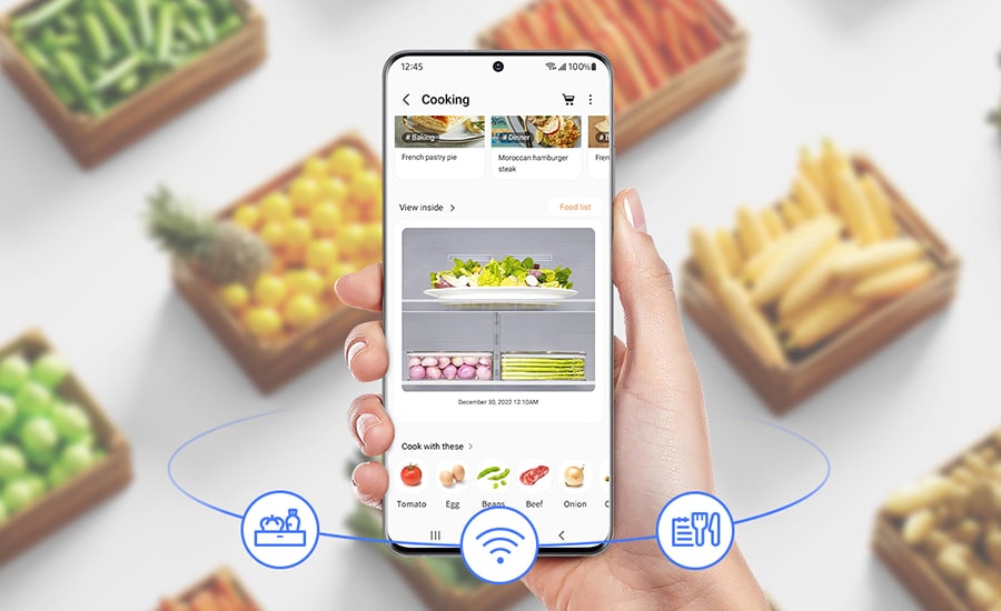 Manage, prepare and buy food more effectively. SmartThings Cooking lets you create a list of the food in your refrigerator and manage expiry dates, so you can check what you have anytime, anywhere. It also recommends personalized recipes based on your preferences and existing ingredients.