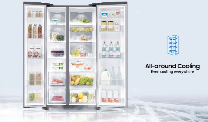 Samsung 700L Inverter Frost Free Side by Side Refrigerator (RS72R5001M9/TL Gentle Silver Matt,SpaceMax Technology,Deodorising Filter)