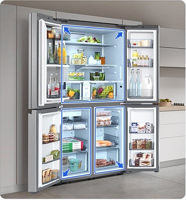 Neatly store much more food. A huge capacity means there’s plenty of room in the fridge and freezer to store your grocery shopping. And it’s easier to keep everything neatly and efficiently organized. So you can quickly find and take out the things you need whenever you want.