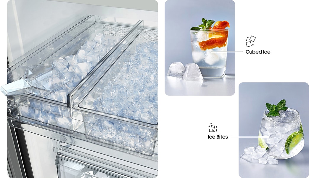 - Dual Ice Maker: Cubed Ice & Ice Bites
