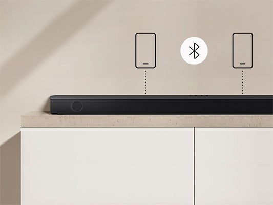 Use the soundbar's Bluetooth to connect two different mobile devices at the same time, and listen to the magic happen even as you switch between the two.