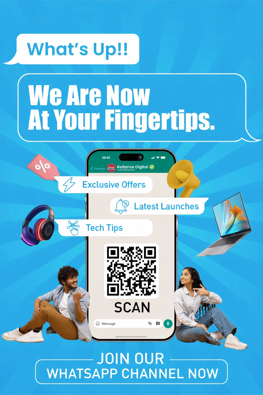 Steps to participate in the Campaign/Contest: Open WhatsApp & Follow Reliance Digital (Verified WhatsApp channel) & send us a screenshot of you following our WhatsApp channel on Instagram before 14th February 2026 12:00 AM and the responses with right answers will be shortlisted and 2 winners will be selected through a randomizer tool.
