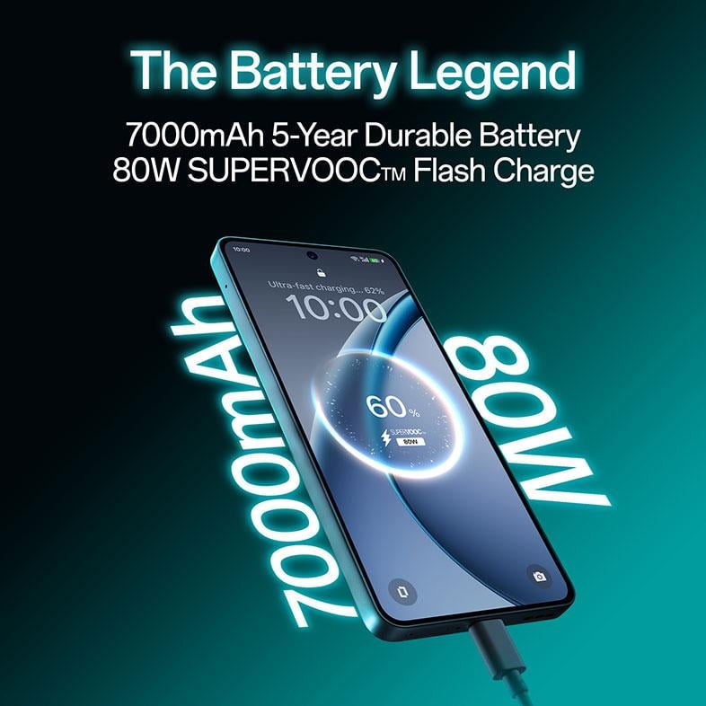 - A big 7,000mAh battery keeps you powered for the whole day, and 80W SUPERVOOCTM charging gets you back to full fast when you do need a boost.