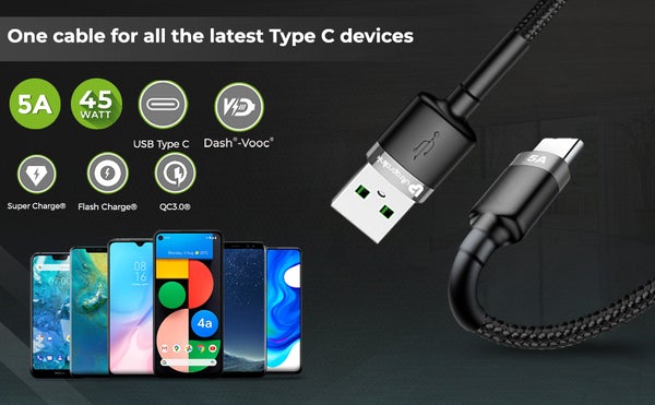 * This Ultraprolink NyloKev 45W USB -Type C Dash/VOOC Cable image is for illustration purpose only. Actual image may vary.