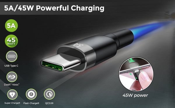 UltraProlink NyloKev 45 UL1059 is the smarter & faster way to charge.The only fast charging Cable you will ever need for your smartphones which work on latest charging tech like Dash/ VooC/ Flash Charge /Super Charge/AFC/QC3.0/PD2.0.When paired with the original brand charger, this cable can deliver a charge of upto 5A-45W max and transfer data at speeds of 480mbits/s.This USB fast charging cable will connect seamlessly to all the new crop of devices coming these days which are power hungry like. Strengthened with Tangle-Free braided nylon on the outside & Kevlar on the inside,and bend tested 5000 times for durability its built to last. Backed by 12 months replacement warranty.