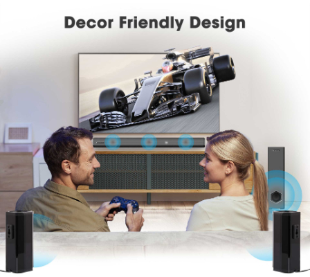 The soundbar comes with a dual rear satellite that magnifies your audio experience by producing immersive surround sound to make your entertainment larger than life.