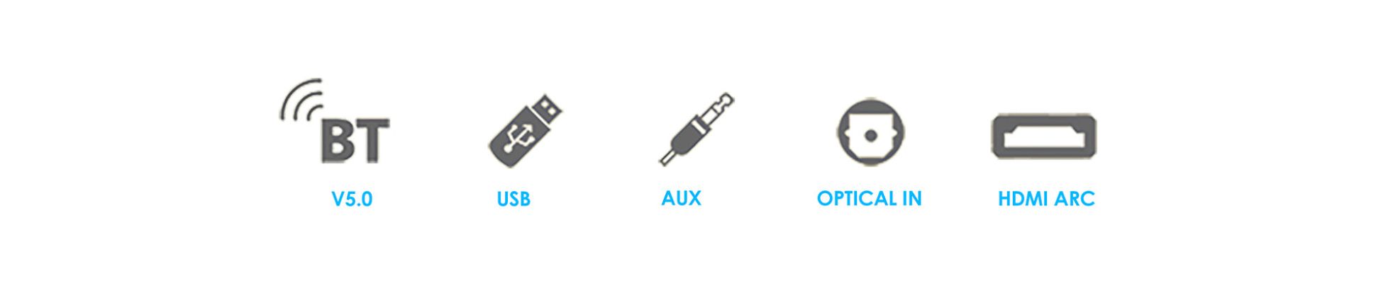 - Multi-connectivity options BT, USB, AUX, HDMI ARC, Optical input